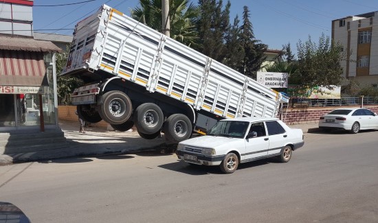 Edinilen bilgiye göre olay, Şanlıurfa’nın Suruç ilçesine bağlı Aligör Mahallesi'nde yaşandı. Un taşıyan çekici, dorsesini bir fırının önünde bırakarak ayrıldı. İşçilerin un çuvallarını indirdiği sırada ilginç bir olay yaşandı. Yükün ağırlığı nedeniyle dorsenin ön tarafı yere çökerken arka tarafı ise havaya kalktı. Trafiğin yoğun olduğu yerde yaşanan olay, görenleri hayretler içerisinde bırakırken dorse, işçilerin un çuvallarını boşaltmasının ardından yeniden normal hale geldi.