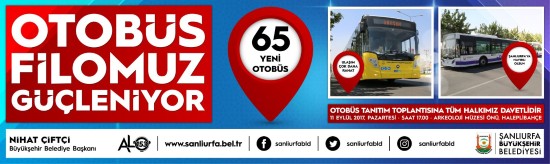 11 Eylül tarihinde hizmete başlayacak otobüslerin hayırlı olmasını dileyen Büyükşehir Belediye Başkanı Nihat Çiftçi, "Şanlıurfalı hizmetin en iyisine layıktır" dedi. Türkiye’de nüfus oranına göre toplu taşımada en büyük araç filosuna sahip olan ve ulaşımda Kalite ödülü alan Şanlıurfa Büyükşehir Belediyesi'nin yeni aldığı 65 adet otobüs 11 Eylül’de hizmet vermeye başlayacak. Kent içi ulaşımda sorunları ortadan kaldırabilmek için çalışmalarını sürdüren Şanlıurfa Büyükşehir Belediyesinin yeni aldığı otobüsler düzenlenecek törenle halka tanıtılacak. Engelli vatandaşların rahat seyahat edebilmeleri için engelli rampası bulunan ve WİFİ hizmetinin de sunulacağı 20 adet 7 metrelik, 25 adet 12 metrelik ve 20 adette körüklü 18 metrelik otobüsler BEL-SAN A.Ş. bünyesinde hizmet verecek. Büyüyen ve gelişen Şanlıurfa'ya her alanda hizmet yaptıklarını belirten Başkan Çiftçi, Şanlıurfalıların rahat ve konforlu ulaşımını sağlamak için gayret gösterdiklerini belirtti. Başkan Nihat Çiftçi'nin katılacağı 65 adet toplu taşıma aracının hizmete sunulacağını içeren program ise (11.09.2017)Pazartesi günü saat 17.00'de Haleplibahçe - Şanlıurfa Müzesi önünde düzenlenecek. Bakan Çiftçi, programa tüm Şanlıurfa halkını davet etti.