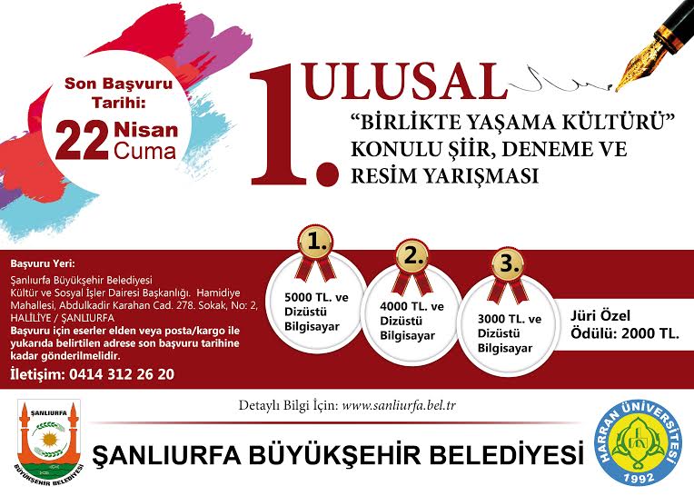 Ayrıca yarışmaya katılım şartları www.sanliurfa.bel.tr internet adresine \"Birlikte Yaşama Kültürü\" konu başlıklı duyuruda yer almaktadır.