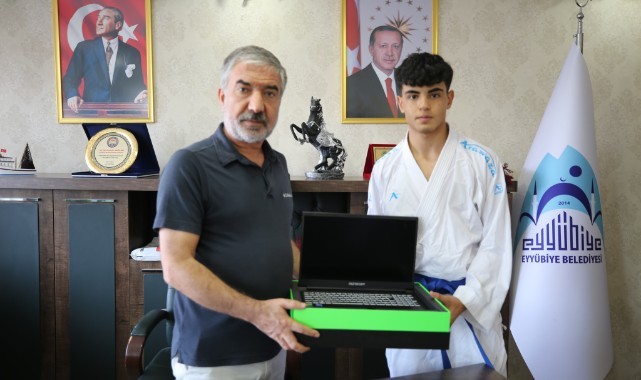 Eyyübiye Belediyesi AK Evler Spor Salonları’nda yetiştirilerek karate sporunda Türkiye ve Avrupa’da önemli dereceler elde eden genç sporcu Savaş Öğüş, Başkan Mehmet Kuş’un başarıyı teşvik ve ödüllendirme anlayışı çerçevesinde ödüllendirildi.