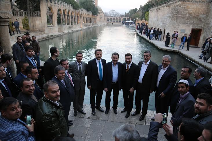 Heyet ardından Tarihi Balıklıgöl\'ü ziyaret ettikten sonra dilek tutup balıklara yem attı.