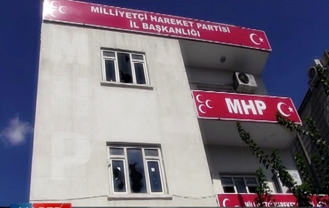Topçu meydanında eylem yapan HDP’li bu gruplardan bir kaçı Gece Şanlıurfa Milliyetçi Hareket Partisi binasını taşladı.Milliyetçi Hareket Partisi Şanlıurfa binasında can kaybı olmazken Bina’da maddi hasarlar gözlendi.
