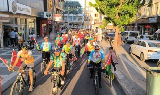 koymalıdır. İsrail, hukuksuz işgal hareketi ve katlettiği insanlar için uluslararası hukuk önünde ve tüm dünyanın vicdanında hapsedilmelidir.Gazze’de yaşanan soykırıma dikkat çekmek ve tepki göstermek amacıyla; Şanlıurfa İHH olarak, Urfa Bisiklet Topluluğu(URBİT) Spor Kulübü, Göbeklitepe Bisiklet Spor Kulübü ve siz değerli halkımızın desteği ile şanlı şehrimizde bir BİSİKLET TURU yapıyoruz. Siyonist zulmünün ve işgalinin sona ermesi, Mescid-i Aksa'nın, Kudüs'ün, Filistin'in ve dünyanın özgürlüğü için, yapılan eylemleri desteklemek hepimizin görevidir. Bizler Türkiye’nin sivil toplum kuruluşları ve halkı olarak Kudüs, Mescid-i Aksa ve Filistin özgür oluncaya kadar meydanlarda olacağız.Bu eylemimize destek veren herkese cani gönülden teşekkür ederiz.Yaşasın, Nehirden Denize Özgür Filistin!