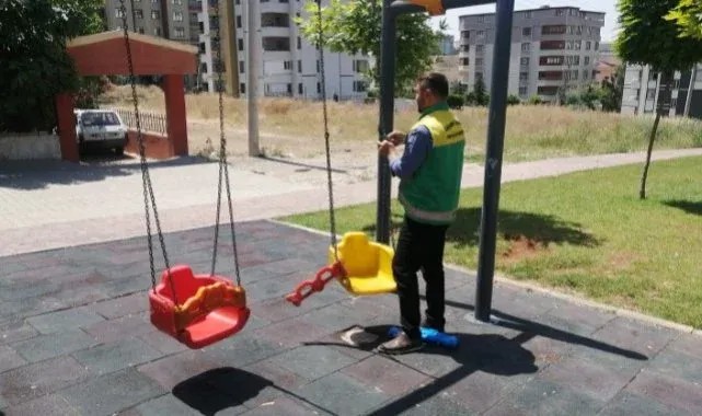 Karaköprüdeki parklarda aydınlatma direkleri ve çocuk oyun gruplarında bakım ve onarım
