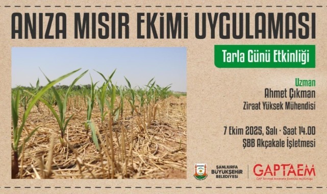 Şanlıurfa Büyükşehir Belediyesi, çiftçilere modern tarım tekniklerini tanıtmak için anıza mısır ve bakteri aşılı soya ekim projelerini uygulamalı olarak sunuyor.
