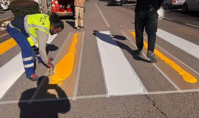 Şanlıurfa Büyükşehir Belediyesi Ulaşım Daire Başkanlığı, 13 ilçede trafik güvenliğini artırmak amacıyla yaya geçidi ve kasis boyama çalışmalarını sürdürüyor.