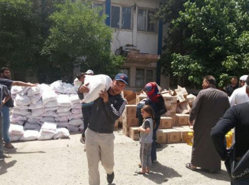 Görevliler, içinde bulgur, pirinç, şeker, un, yağ gibi temel ihtiyaç malzemelerinin bulunduğu yardım paketlerini Suriyeli ailelere teslim etti.