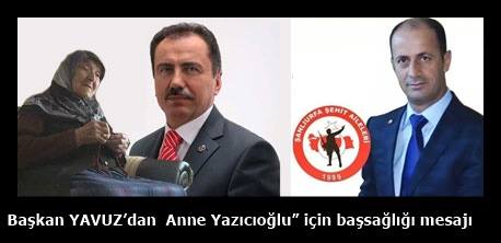 “25 Ocak\'ta kalp krizi geçiren BBP Eski Genel Başkanı Şehit Muhsin Yazıcıoğlu’nun annesi Fidan Yazıcıoğlu, kaldırıldığı hastanede 26 gündür yaşam mücadelesi veriyordu. Bu gece Hakkın Rahmetine kavuşmuştur. Şanlıurfa Şehit Aileler Derneği adına Fidan Yazıcıoğlu’na Allah\'tan Rahmet, Kederli Ailesine ve BBP Camiasına başsağlı dilerim” dedi